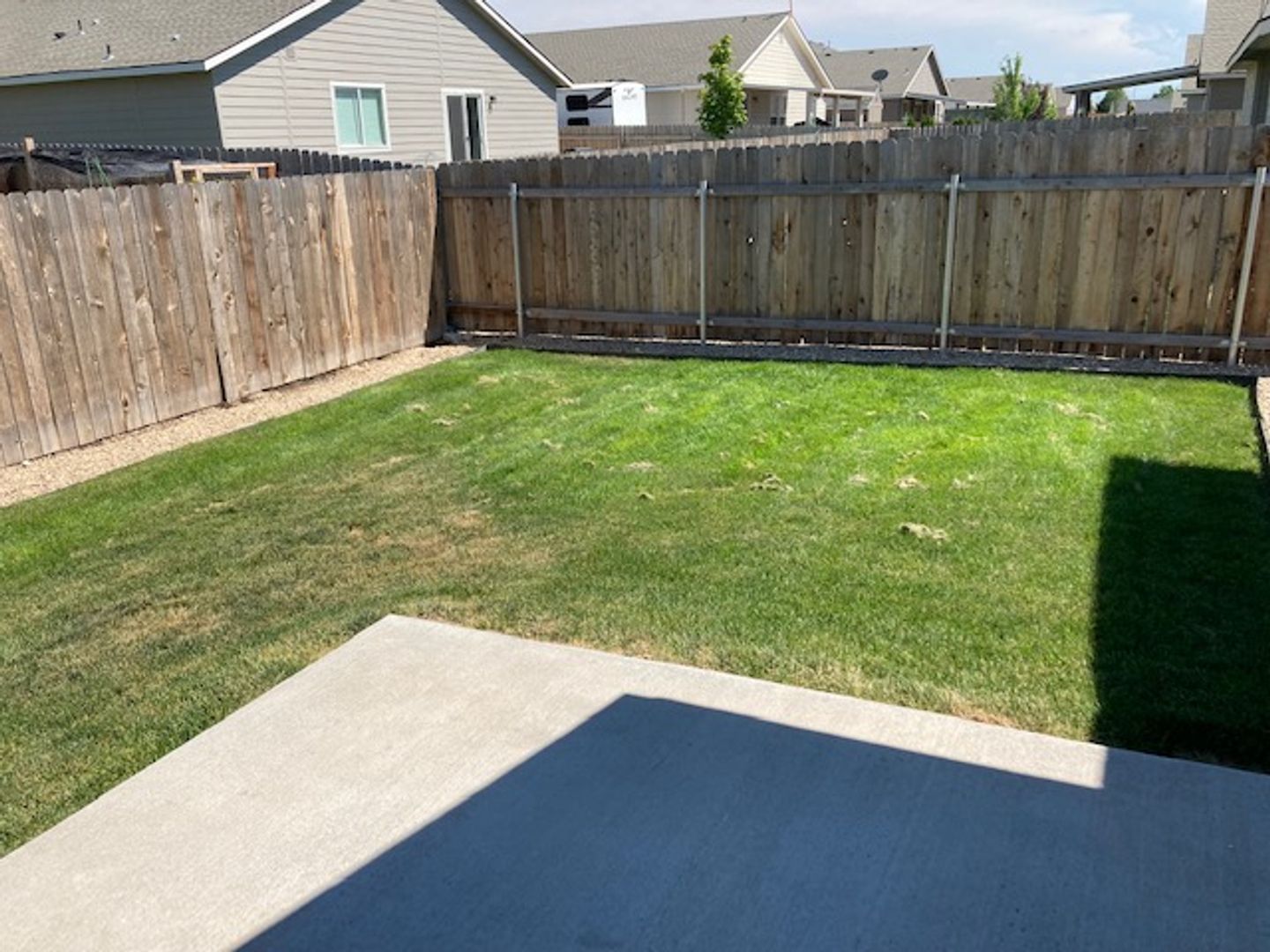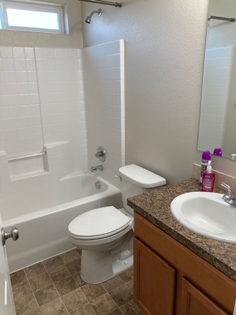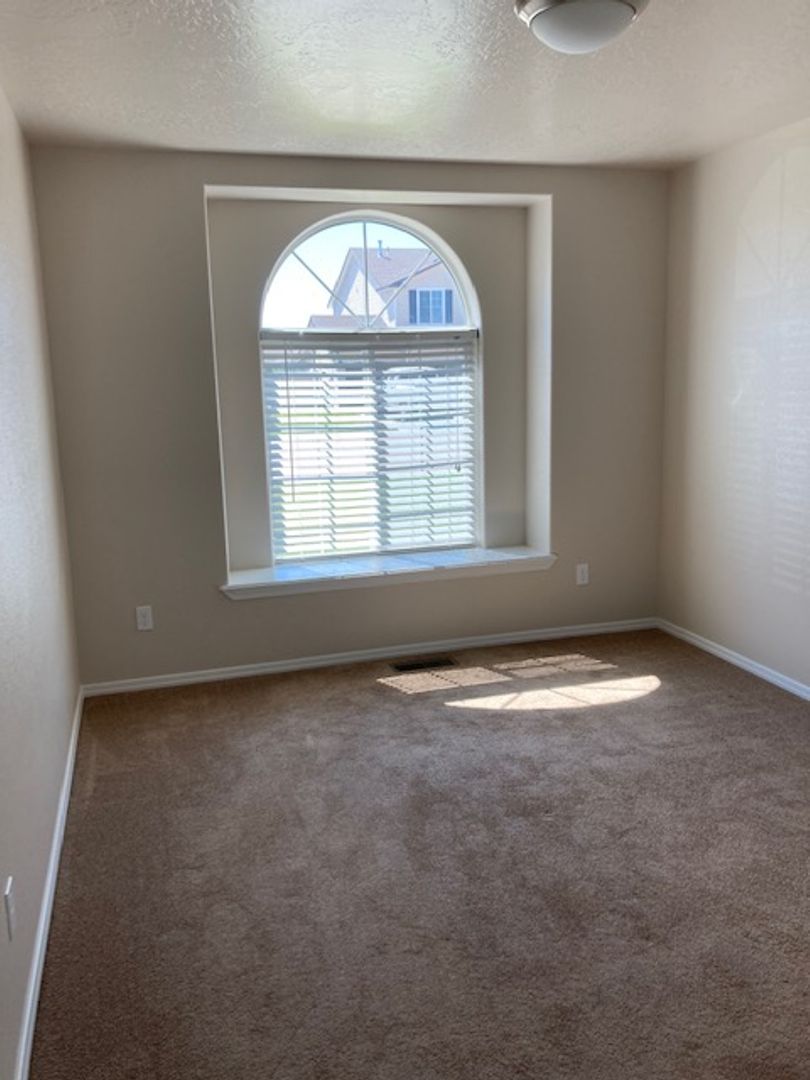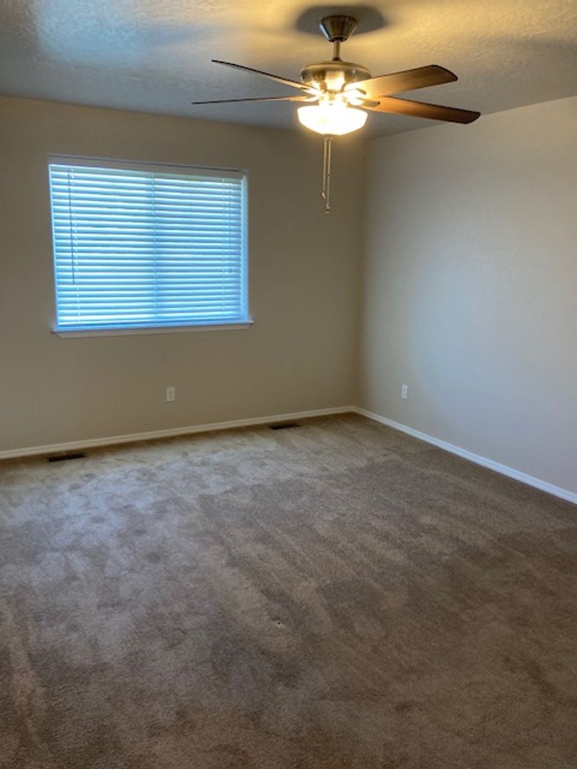 Single level home with split bedroom design. Located in new subdivision close to freeway access, parks, schools, shopping, and more. The primary bedroom boasts a large walk in closet and the bedroom has its own bathroom suite. Open floor plan with kitchen opening up to the large family room. Vaulted ceilings make this area feel very open. Good size rear yard has a gardening area ready for planting. Home has a water softener in the large oversized garage. This home is in great shape and is newer. It wont last long. One year lease required. Small dogs allowed with monthly pet fee. There is a small application fee which covers the background check.