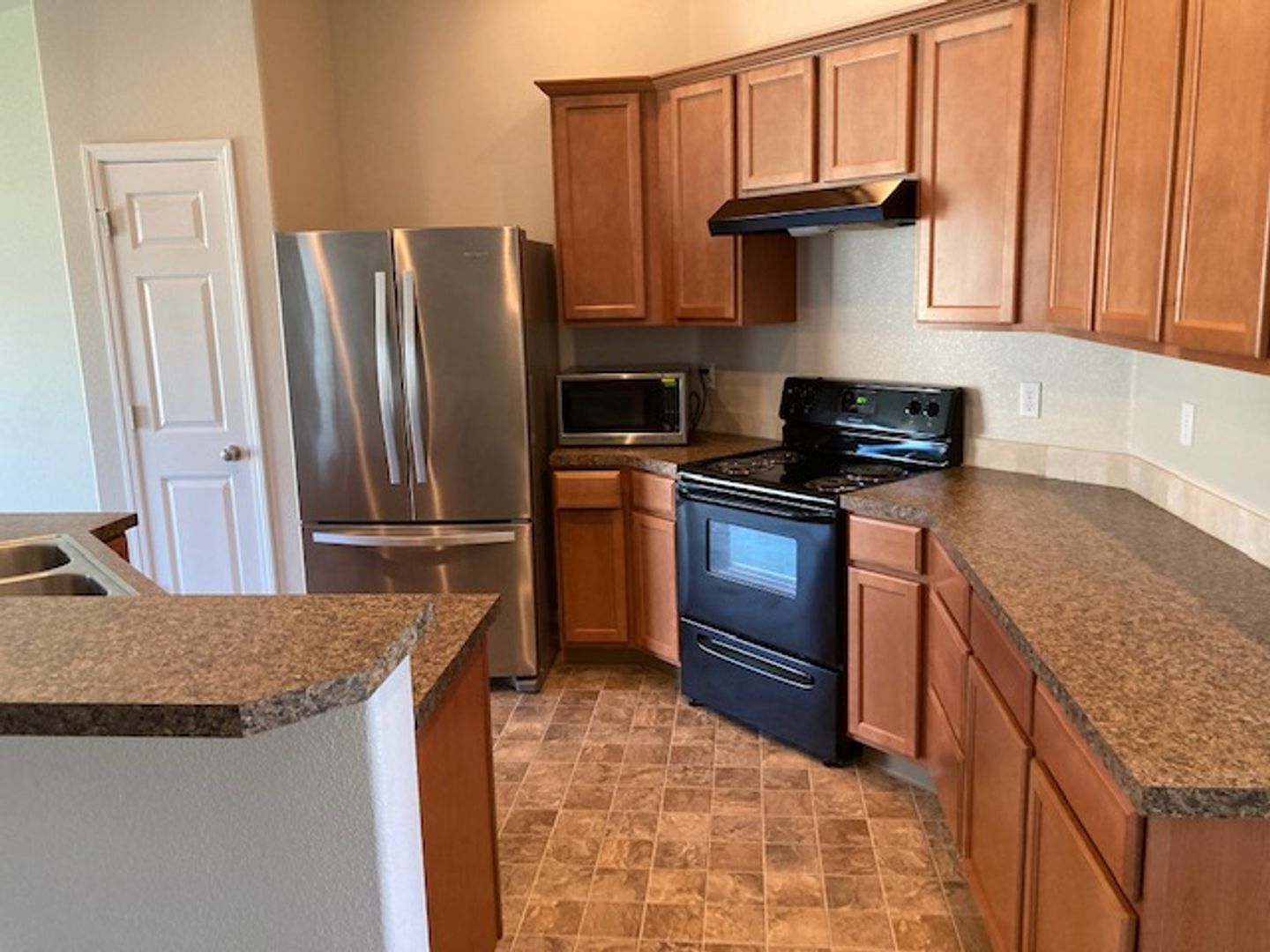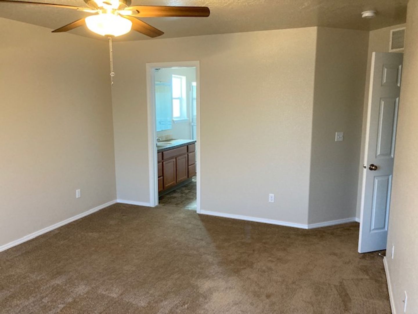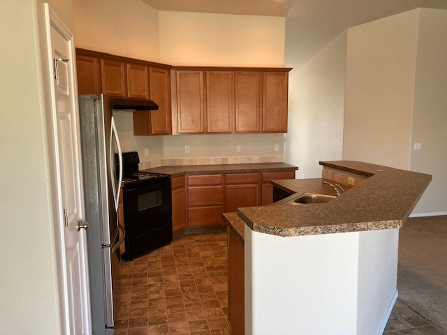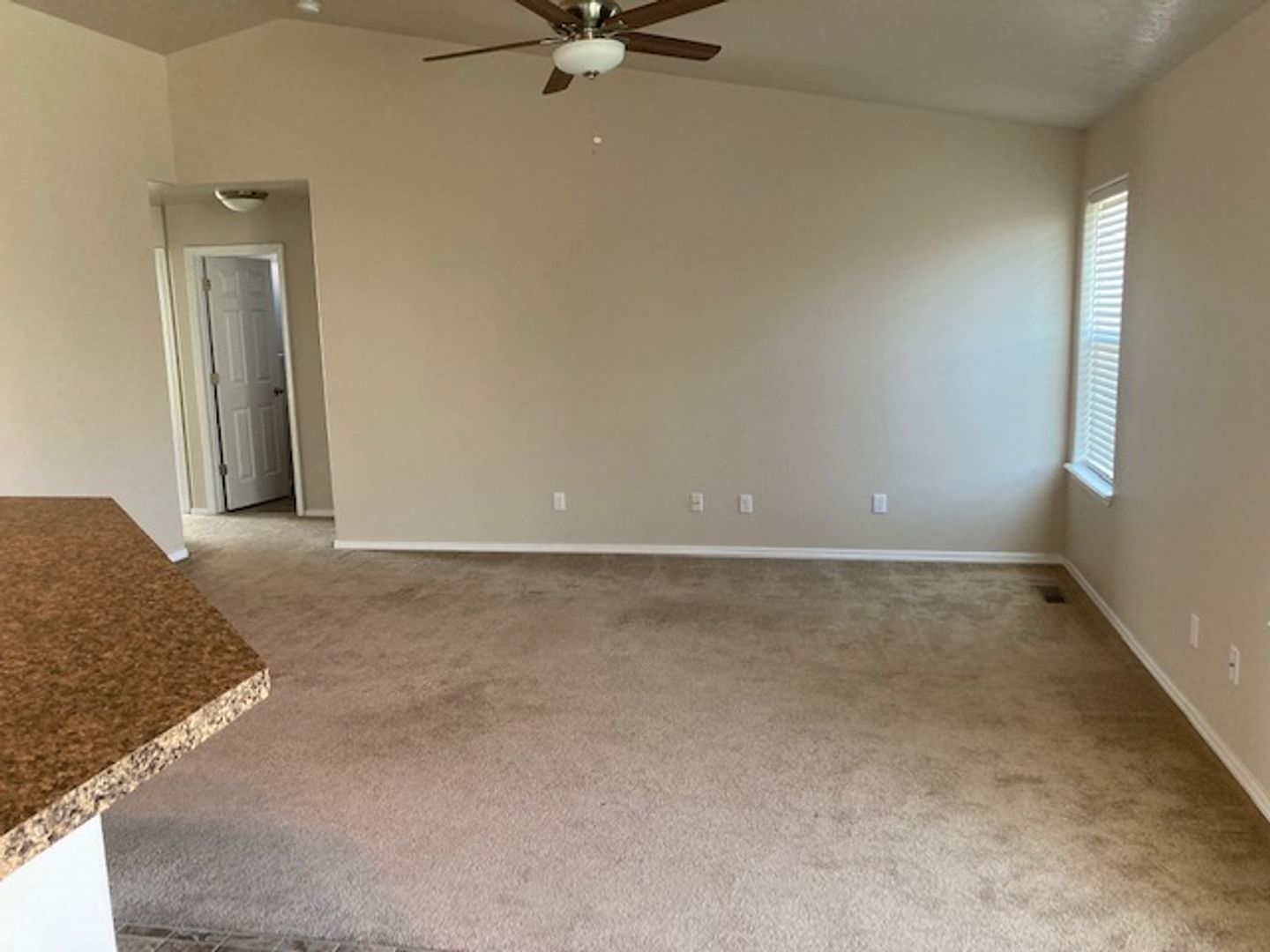 Single level home with split bedroom design. Located in new subdivision close to freeway access, parks, schools, shopping, and more. The primary bedroom boasts a large walk in closet and the bedroom has its own bathroom suite. Open floor plan with kitchen opening up to the large family room. Vaulted ceilings make this area feel very open. Good size rear yard has a gardening area ready for planting. Home has a water softener in the large oversized garage. This home is in great shape and is newer. It wont last long. One year lease required. Small dogs allowed with monthly pet fee. There is a small application fee which covers the background check.
